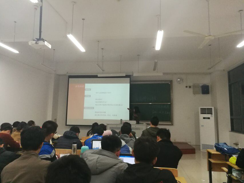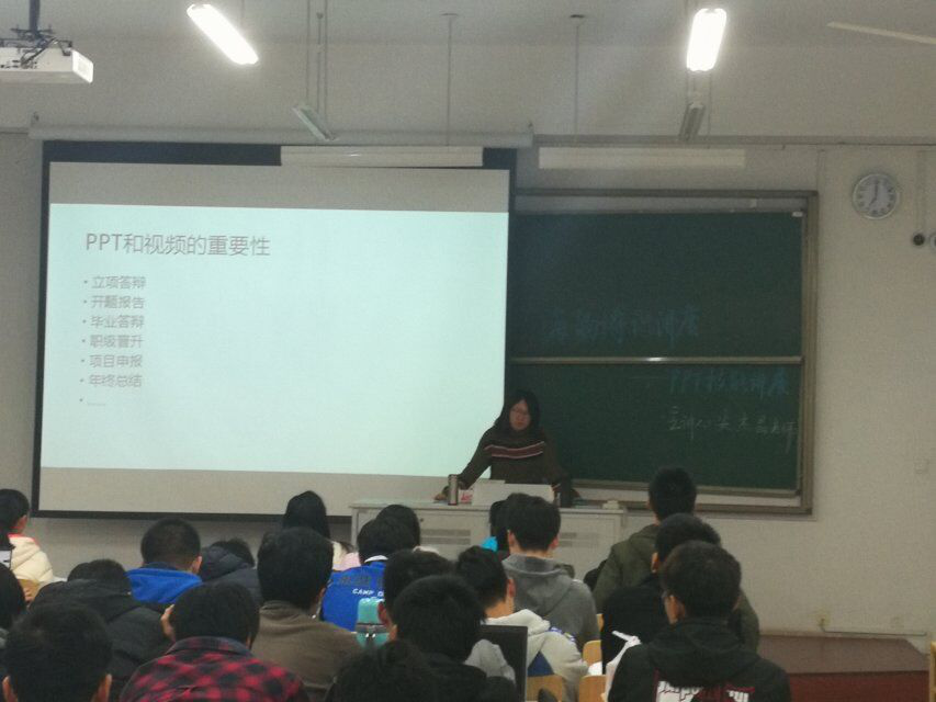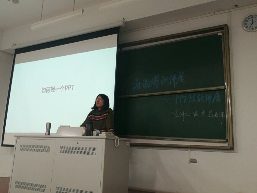 首先,安杰晶老师给同学们讲解了有关ppt动画的制作、ppt图片的剪切、排版等等,还将网络上的ppt制作大神介绍给了同学们。