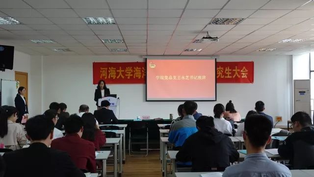 在庄严的中华人民共和国国歌声中,会议正式拉开序幕。王永芝书记及白学志院长分别为大会致辞,他们对上一届研会开展的工作进行了中肯的评价,同时也对新一届研会及全体研究生提出了宝贵的意见和建议,这将激励着海洋人继续砥砺前行。校研究生会代表王浩越同学也代表校研会对本次大会的关注与支持。