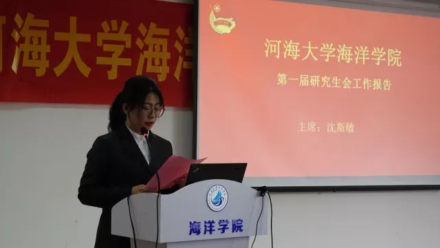 研会主席沈斯敏同学做了第一届必赢线路检测中心研究生会工作报告,从富有创意的海洋文化海报征集大赛到专业的简历制作大赛;从展现青春风采的师生趣味运动会到能体现海洋人大局意识的“海之蛙”明信片寄送活动;从2017年“研究生啦啦操”首夺桂冠到跻身于人才济济的“学海争锋”百名优秀报告人队伍,这些都是我们海洋人拼搏努力的成果。