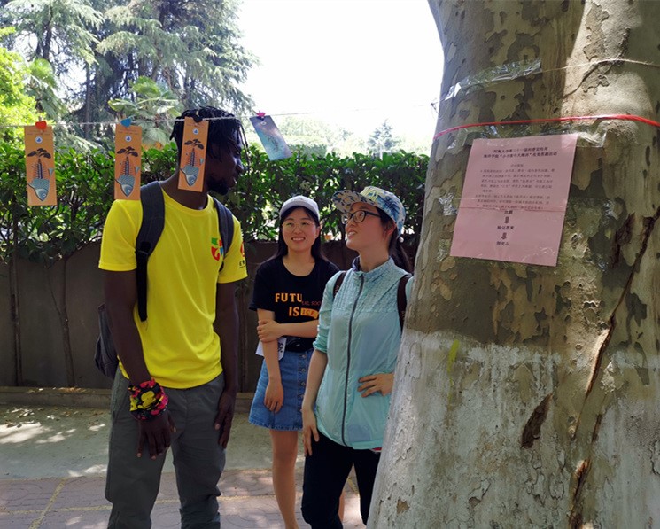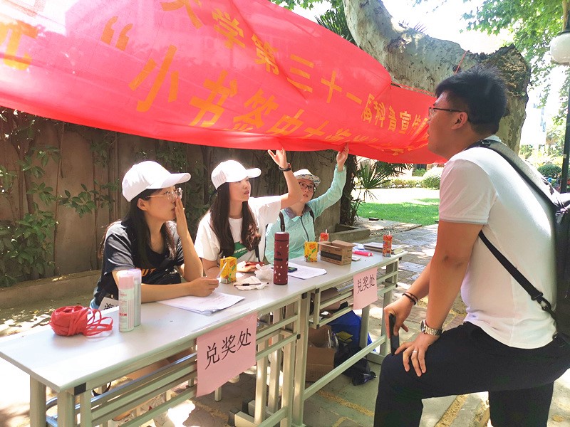 活动一开始便吸引了同学、老师以及校外人员的参与。组织活动的同学在选题区作规则介绍,在兑奖区安排答题领奖。特别制作的书签受到了大家的喜爱,完成题目后,老师、同学等纷纷将书签留作纪念。想参与到活动中的留学生还请工作人员帮助翻译题目,他们选择了与“死海名称的由来”有关的题目,并向我们了解死海的基本情况。