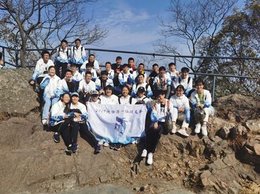 行径至半山腰处,在经过短暂休整之后,同学们又重新打起精神向山顶进发。不久,在同学们的辛苦努力下,在山脚处空空如也的垃圾袋中装满了各种垃圾。最后,大家互帮互助着到达了山顶,并在山顶上唱响国歌——《义勇军进行曲》以及河海大学校歌。