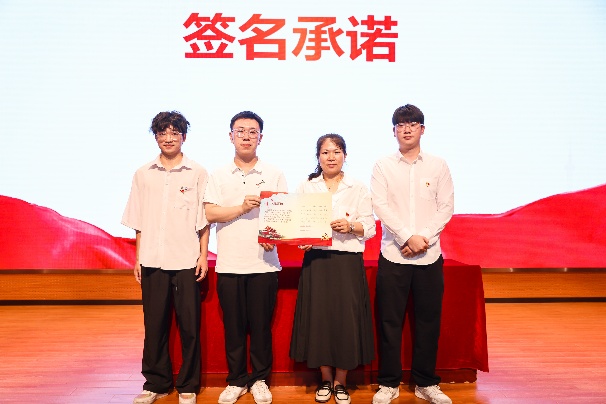 为把“政治生日”的外在仪式转化为党员党性意识的自觉提升,全体党员逐一上台,在入党誓词旁郑重签下自己的姓名,时刻提醒自己履行政治承诺,做表率、当先锋,奋力书写为中国式现代化挺膺担当的青春篇章。活动在庄严的国际歌中落下帷幕。
